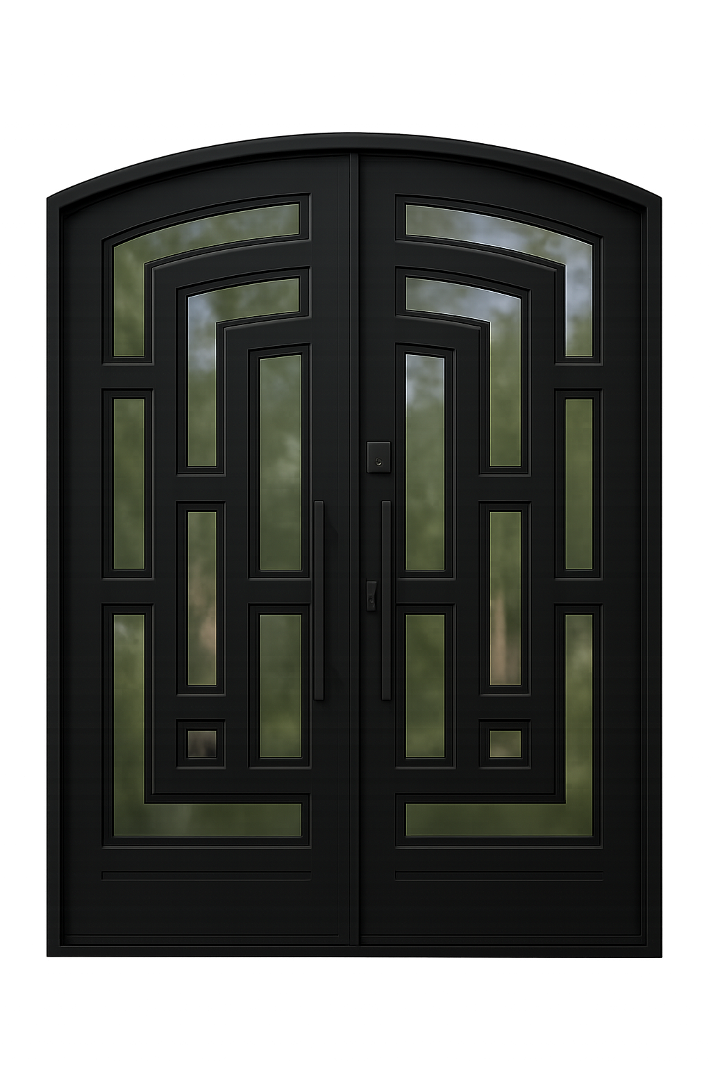 We use 5/8″ tempered dual pane glass with glass already installed in our wrought iron doors. For custom exterior iron doors, we have over 6 different glass options.