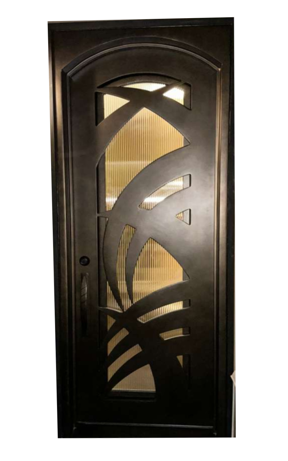 We use 5/8″ tempered dual pane glass with glass already installed in our wrought iron doors. For custom exterior iron doors, we have over 6 different glass options.