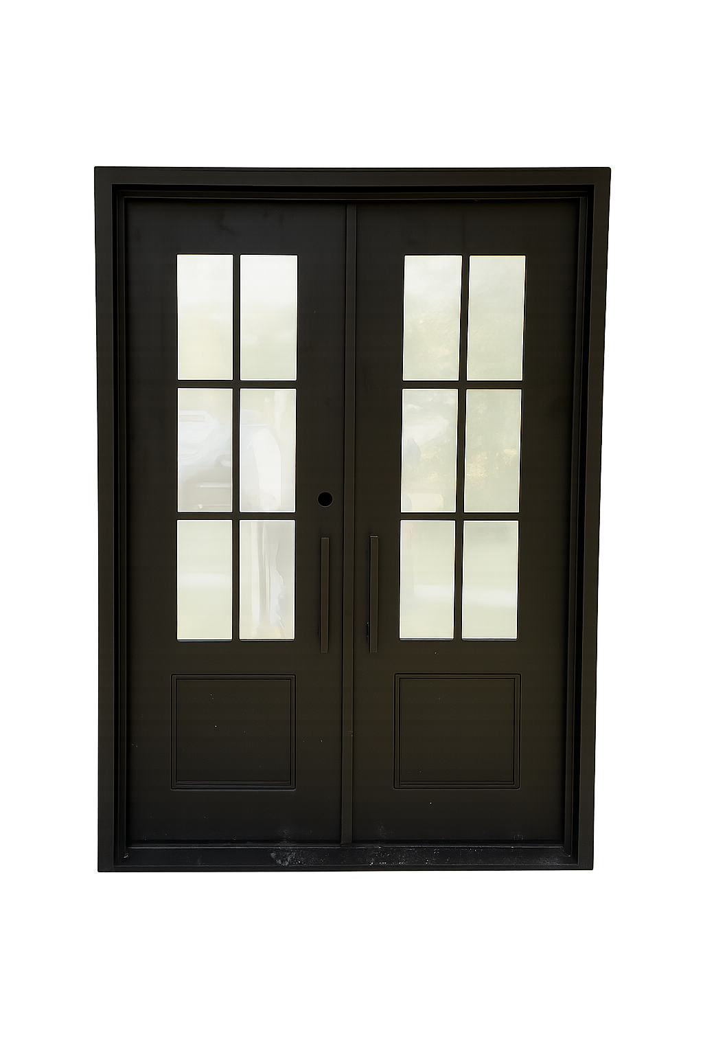 Both of our modern steel doors & wrought iron doors are pre-hung meaning the jamb, door, glass, flush bolt, roller latch, & sweep is included.