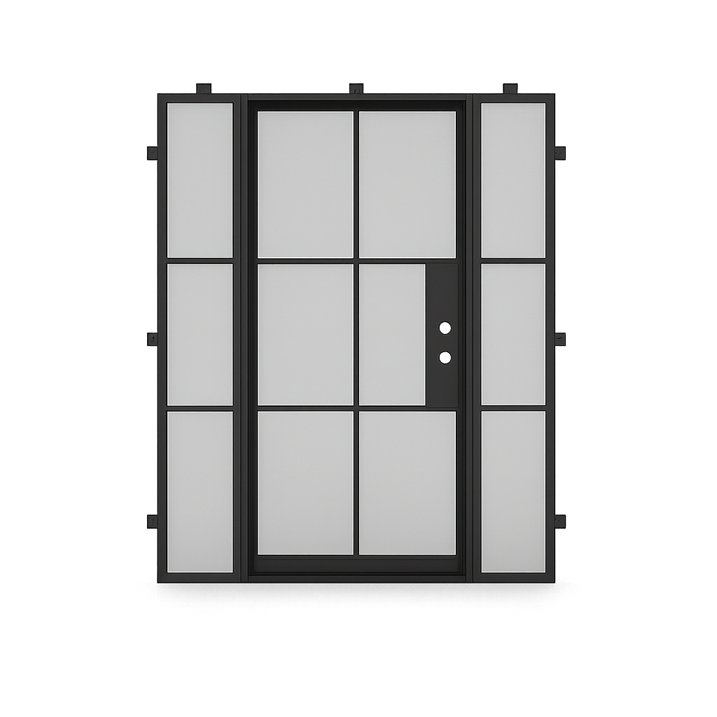 Because there are many different handles and locks to choose from, we do not include handles and locks with in-stock iron & steel doors. However, these may be purchased from us separately. Our iron steel exterior & interior doors are compatible with most major lock-set brands and smart locks.